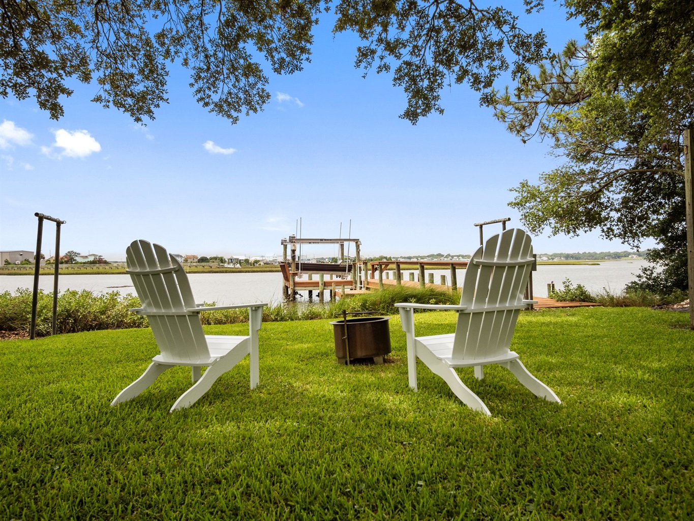 The private dock is accessible to kayak, paddle boards, jet skis, and low draft / flat bottom boats. However, there are several public boat launches in the nearby area (one right across the street). Right off the dock, go fishing during high tide (during summer and fall months).